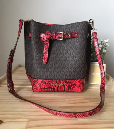100% Authentic MK Emilia Small Bucket Bag Messenger Dark sangria multi and gold hardware **Brand n... Show more