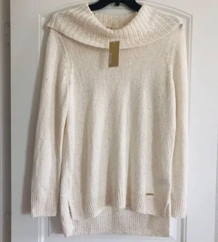 MICHAEL KORS BONE WHITE SEQUIN EMBELLISHED COWL NECK SWEATER NWT A combination of cozy and festive,... Show more