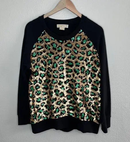 Great preloved condition Michael Michael Kors Sequin Gold and Green Leopard Print Black Sweatshirt 0... Show more