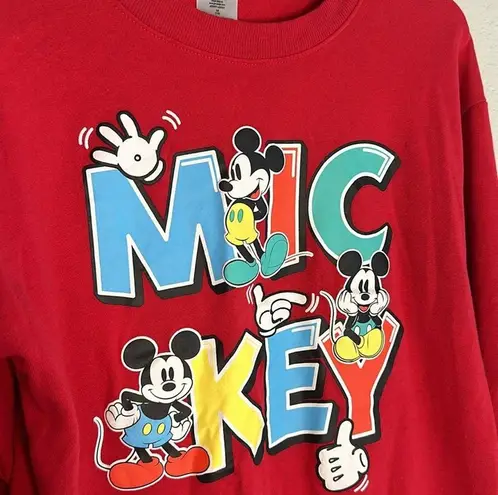 Mickey Mouse Disney Sweatshirt Colorful Retro print graphic Long Sleeve Solid Red Size women’s Med... Show more