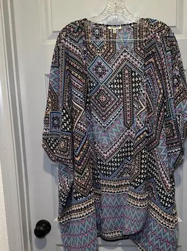 Mileage Multicolor Boho Print Open Front Kimono size 1X Blue - $15 - From Hayley