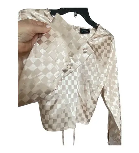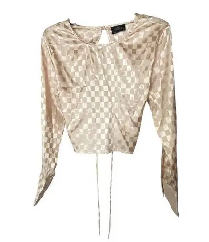 Milk & Honey Size L Open Back Lace Up Long Sleeve Top Beige Cream Checkerboard Size L - $23 - From Christine