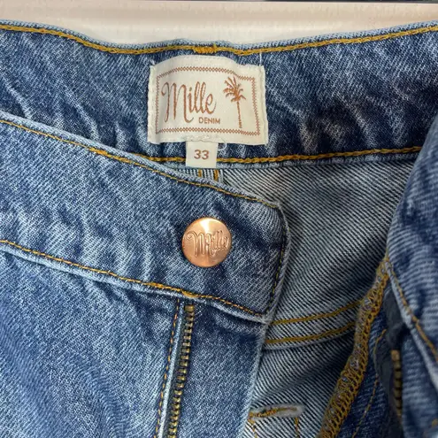 Mille Denim Ashton High waist flare jeans, women’s size 33. In good pre-owned condition. 100% cotton denim, may be snug at first but will stretch out with wear. Medium blue wash with factory fade, whiskering and light distressing on edges and seams. Front button closure with zip fly and five pocket design Fitted through hips and thighs, fabulous wider flared legs Waist: 16.5” across Rise: 12.5” Inseam: a bit over 33” Bottom hems: 13.5” across All measurements are approximate and were taken with the garment laid flat Smoke free home with pets Ladies classic retro comfy fall winter spring