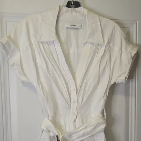 MISHA White Button-Up Romper with Belt 100% Linen Size 0 - $50 - From Maria