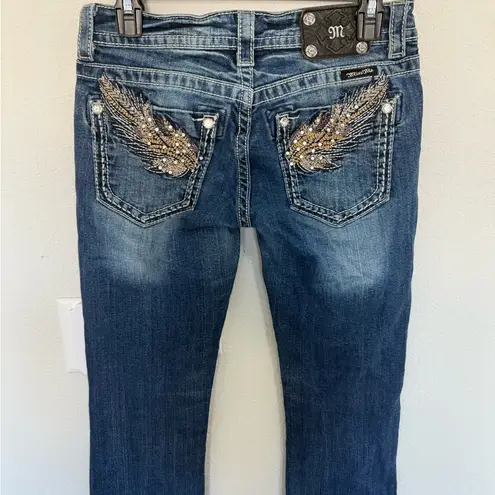 Miss Me Boot Cut Jeans Embroidered & Embellished Crystal Feather Wings Pockets Size 28 These jeans... Show more