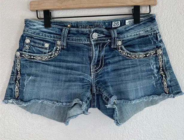 Miss Me Jeans’ famous denim shorts and skinny, bootcut, and straight-leg jeans are instantly recognizable thanks to their iconic white stitching, decorative pockets, rhinestone embellishments, and crystal buttons.
