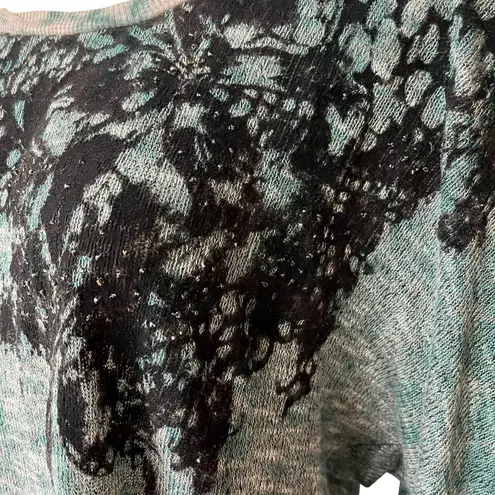 Miss Me sweater in Heathered turquoise . Features black detailing with black beads. Lightweight brea... Show more