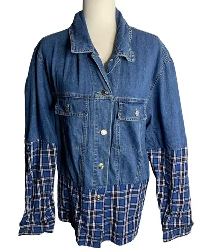 Mistress Rocks Enthuse Denim Jacket S Blue Plaid Oversized Button Up Pockets - $50 - From Crystal