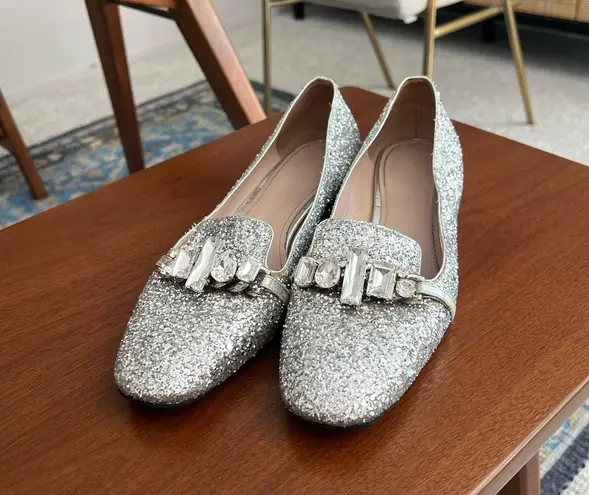 Miu Miu silver glitter rhinestone loafer square toe block heel pump 37.5 Size 7.5 - $125 - From Lexi