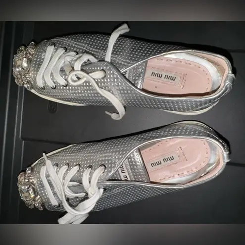 Miu Miu Swarovski crystal toe-cap sliver sneakers flats size 38.5 8.5 Silver - $270 - From Meep