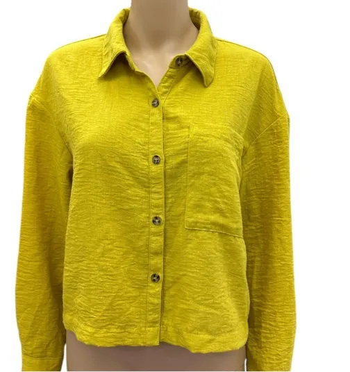 Questions? Leave a comment below! Moa Moa Crinkle Mustard Yellow Long Sleeve Button Up wit... Show more