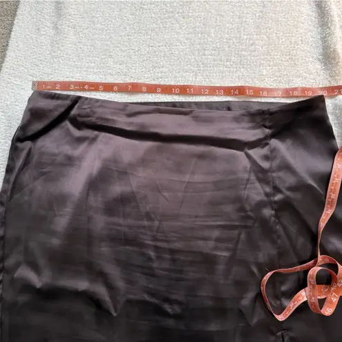 This brown midi skirt is designed with a stylish slit, perfect for cocktail or night out occasions. Its sleek silhouette and subtle sheen add a touch of elegance, making it a standout piece in any wardrobe.