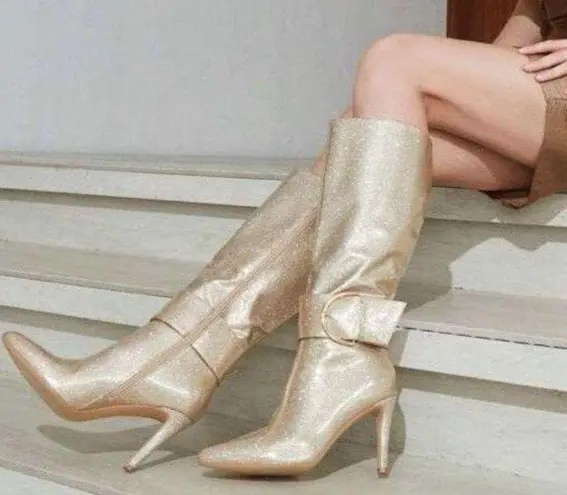 Modatope metallic sparkle gold Boots Pointed Toe Heel Zipper Buckle size 7 - $46 New With Tags - From Heather
