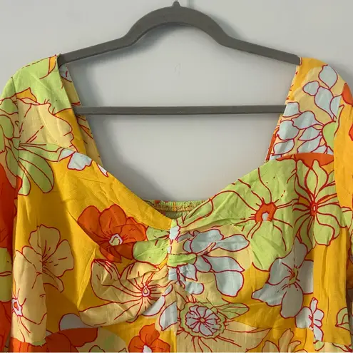 ModCloth Seaside Cottage Getaway Tie Up Top Honolulu Floral Color Yellow White Orange Size 1X Fab... Show more