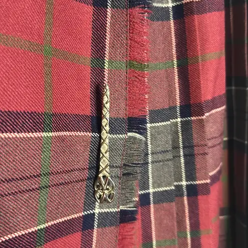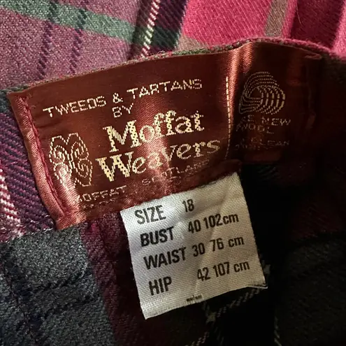 Moffat Weavers 100% Wool Kilt Burgundy Red Blue and Grey Plaid Includes Pin as shown Size 18 not sure what this refers to - I’m an 8-10 and this fits perfectly, adjustable buckle, interior Velcro closure Length approx 26.5” Waist flat as shown 15.75” Excellent condition! No flaws Scottish Renaissance Fair Medieval I ship fast