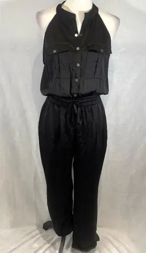 Button down notched vneck top. Button breast pockets. Wide elastic banded waistline with tie. Cuffe... Show more