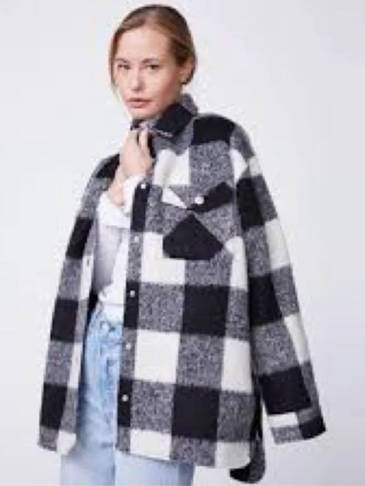 Monrow Black and‎ White Plaid Flannel Button-Up Jacket Wool Blend Size XL NWT - $61 New With Tags - From Danielle