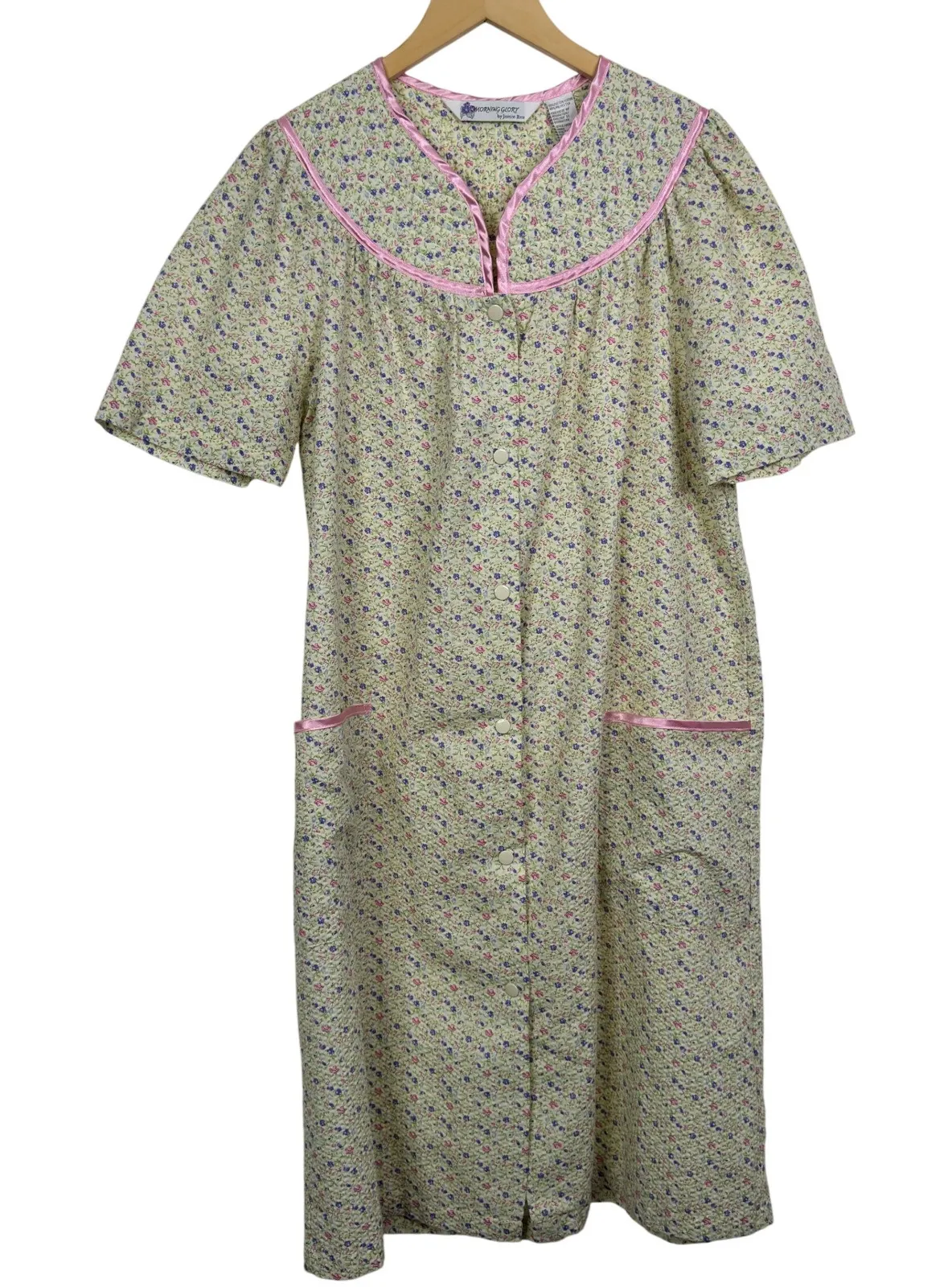- Great like new condition, see all pictures! Measurements Laying Flat!! Size - M Armpit to Armpit - 24" Waist - 24" Hips - 24" Length - 41" All items from a pet and Smoke Free Home Sellers Note • 1125-i *All Items have been cleaned/ steamed per eBay standards. Keywords: robe, loungewear, nightgown, house dress, floral print, button front, pockets, short sleeve, vintage style, lightweight, comfortable, sleepwear, day dress, garden floral