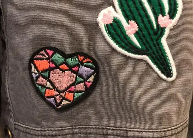 Adorable new fatigue green jacket! Cool patches onto it! Tag still attached! 20” long. 15” shoulder... Show more