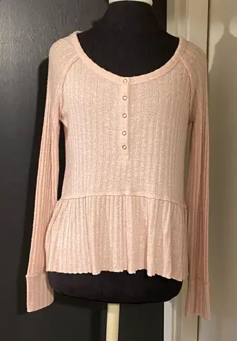 💜 Mossimo Ribbed Fleece Top Baby Pink w Henley Snap Buttons and Ruffle Peplum Size XS - $20 - From Kailey