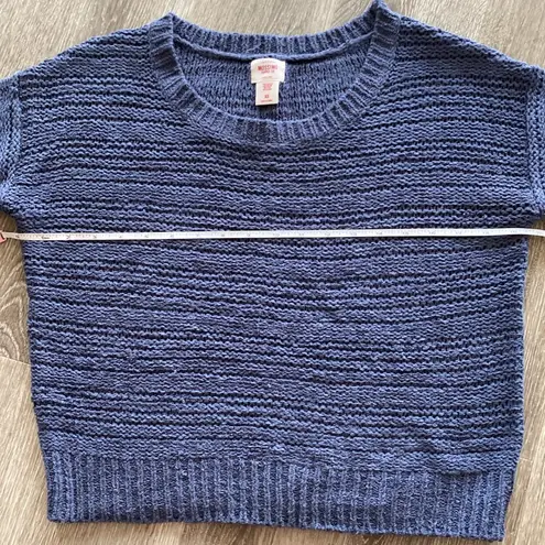 Open stitch crochet style knit sweater in blue from target Size XS Cuffed sleeve Crew neck Gre... Show more
