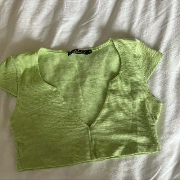 Green ribbed crop top. Small spot on shirt (pictured) not noticeable on.