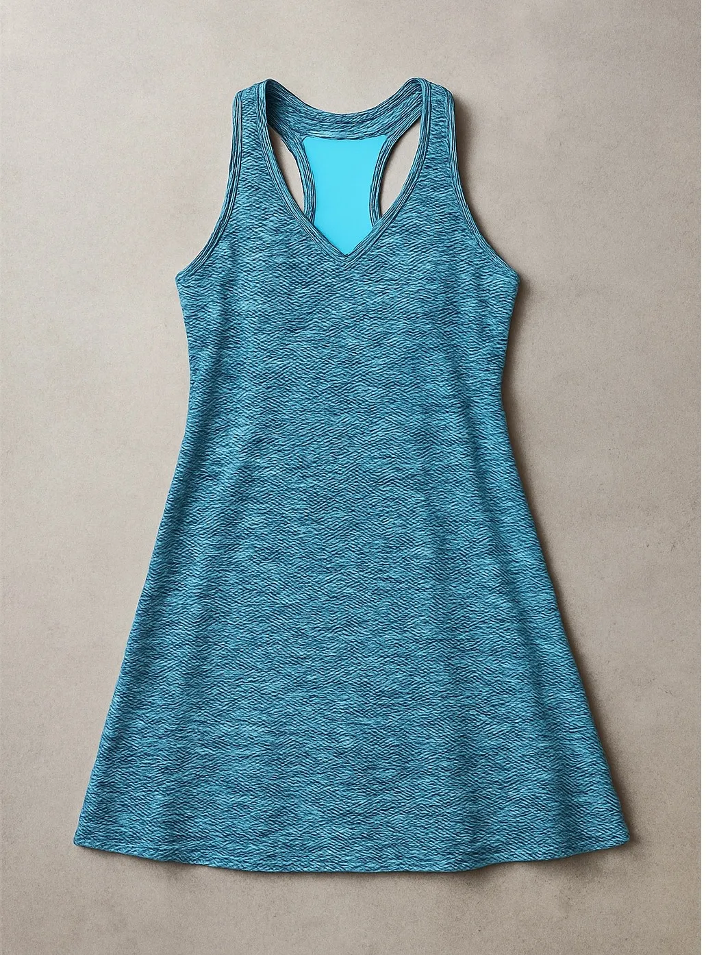 MPG Blue Patterned Racerback V-Neck Athletic Dress L Sporty and flattering MPG dress with V-neck and racerback design for ease of movement. Features built-in bra, side pockets, and a vibrant blue pattern. Perfect for active days or casual wear. Condition: Excellent, pre-owned Size: Large Material: Polyester/Spandex blend Measurements: See photos for details. AI-generated model photo for illustrative purposes only. Tags: MPG, Mondetta, Activewear, Racerback, Blue Dress, Built-In Bra, Pockets, Athleisure, Women's L