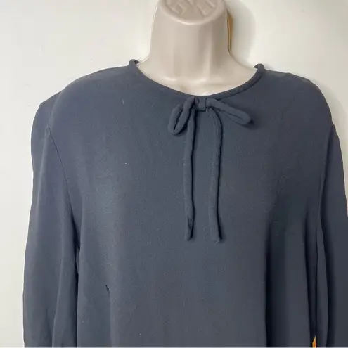 . Gently used condition. Please see the embroidery detail fixed a tear in fabric, Look fashionable and stylish with this black dress by Msgm. It has a floral printed accent piece at the left hip that falls till the hem. It gives an feminine touch to this Little Black Dress. It features a round neckline with a ribbon and long blouson sleeves for that extra romantic look. Retails $799