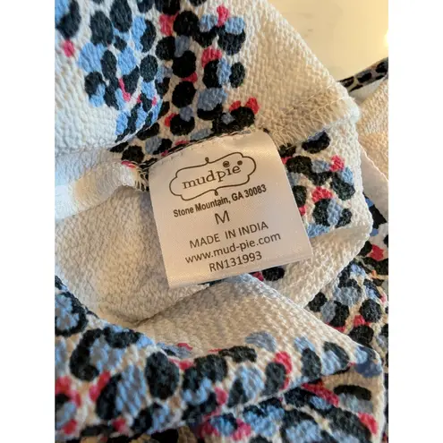 Mudpie women’s ruffle sleeve blouse in a cream base with blue and red dotted stripe pattern. Features layered ruffles across the front and sleeves with a keyhole back button closure. Textured woven fabric adds structure and style. Lightweight and perfect for spring or summer. Measurements: Pit to pit: 21.5” Length: 23” Condition: Excellent pre-owned condition — no stains, snags, or holes. Clean and ready to wear. Keywords: Mudpie blouse, ruffle sleeve top, boho chic blouse, preppy spring top, dotted stripe pattern, feminine workwear, textured polyester top, floral stripe blouse, coastal boho, boutique brand top.