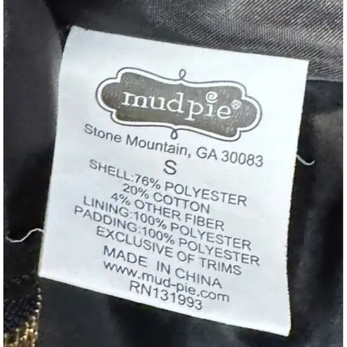 Brand- Mud Pie Material- 76% Polyester/20% Cotton/4% Other Size- Small Color- Black/White Measurements: Armpit to armpit- Under the arm measurement- 19" Shoulder to shoulder- Shoulder seam to shoulder seam- 13.5" Length- From bottom of collar to the end of the jacket- 24.5" Condition: Pre-owned, very good used condition. See Photos. Thank you for Shopping. Feel free to check out my listings for various preloved items.