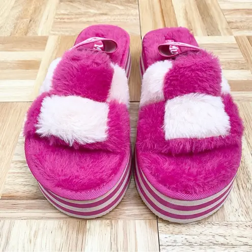 MUDD Stormy-02L Fuchsia/White Check Faux Fur Elastic Slingback Slides Platform Slippers Size 9. Pre-... Show more