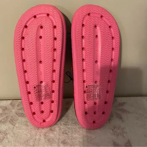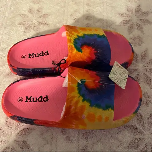 Colorful tie-dye design. Comfortable slide style. Perfect for fun outings.