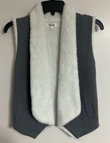 Women’s Juniors Mudd sleeveless open front gray vest with white Sherpa lining Size 10 Pit to pit 15.... Show more
