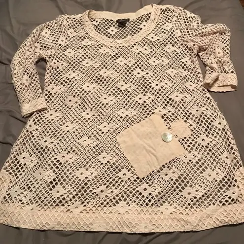 Crochet Lace Open Weave Cover Up With Pocket Tan Size M - $19 - From Angela