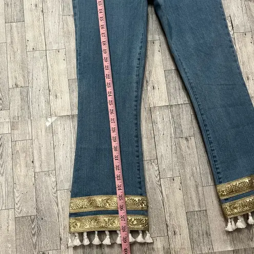 MuMu Boho Light Blue Denim Flare Jeans with Tassel Trim Embellished Hem Size 27 - $28 - From Florinda