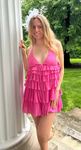 Pink mustard seed dress with ruffles and cut out in back, size large, perfect condition!