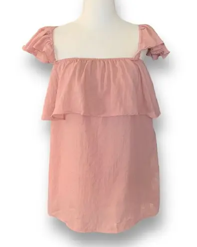 Mustard Seed Blouse Size Medium Lightweight ruffled shirt Sweet rosé pink shade Romantic square ne... Show more