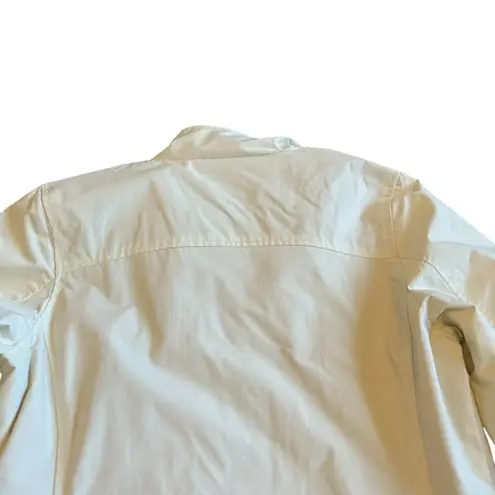 Musto Size 6 women's US Off-white sailing jacket Zip-down; Red sailing logo on front Zipper pockets at hips; waterproof fabric 100% nylon Measurements taken across the front when laying flat: Chest: 19", Length: 24", Sleeve length from neck: 29" In good condition with some small stains throughout as pictured; have not attempted cleaning I am always open to offers - bundle & save!