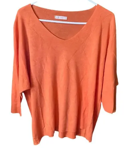 My Glamour lady made in Italy size XL Modal blend sweater. The style name is Daisy. Semi sheer with a light argyle patted knitted in. Pit to pit 29.5” slight dolman sleeves and length 24.5”.