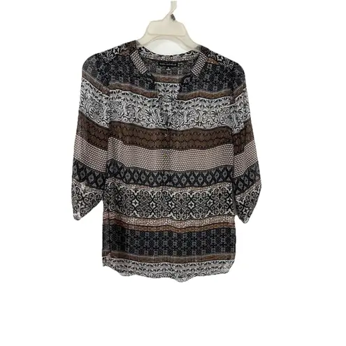 My Michelle semi sheer slightly sparkly boho print blouse Gold colored buttons , 3/4 sleeve also bu... Show more
