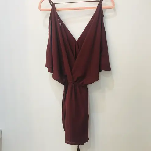 Naked Zebra maroon COLD SHOULDER ROMPER sz small. Gorgeous romper that is great condition. The stock... Show more