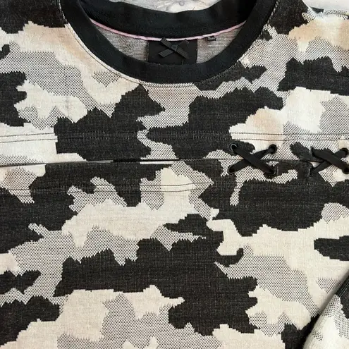 Interesting horizontally split outer shell across the chest is laced up with fun detail. More laws... Show more