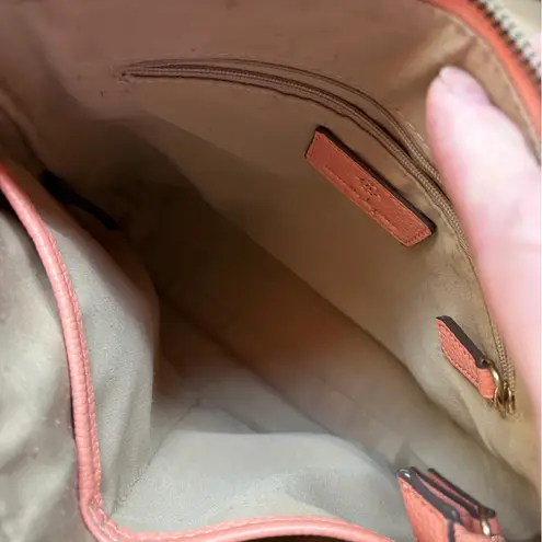 Chic coral tote with a textured design. Features an elegant gold logo detail. Photos show all detai... Show more