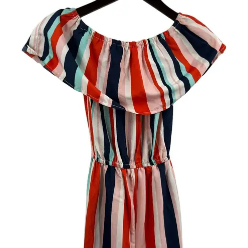 Nasty Gal Bardot Striped Wide Leg Off Shoulder Jumpsuit Size 2 New. Off shoulder ruffle sleeve Defi... Show more