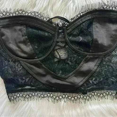 Nasty Gal Express Yourself Corset Top Black satin and lace Size 4 Back lace up corset top. Strapl... Show more