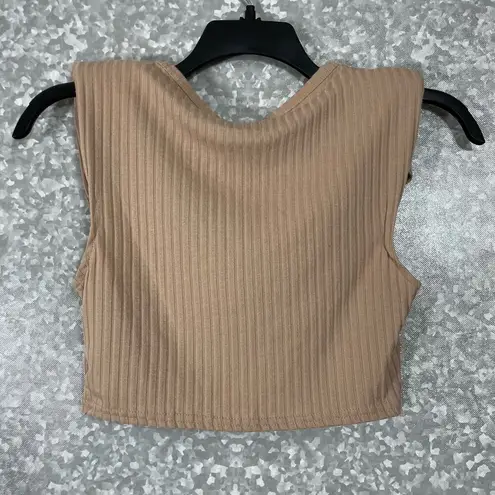 Women's NWT sleeveless crop top by Nasty Gal. This taupe top is ribbed with padded shoulders and a... Show more
