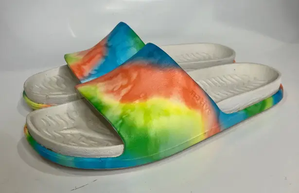 Native Spencer LX rainbow tie dye slides casual summer beach No size markings, approximately size 9... Show more