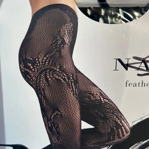 Natori feather lace net tights in black, size medium. Intricate feather lace pattern throughout the sheer net fabric. Style: Mock Suspender Tights Type: Tights Opacity: Semi-Sheer Material: Nylon, Spandex, Blended Fabric Theme: Aztec Features: Breathable Pattern: Textured Toe Style: Full Toe Department: Women Occasion: Glamour, Party/Cocktail, Everyday Season: All Seasons Number in Pack: 2 Pairs Garment Care: Machine Washable Keywords: Natori tights, lace tights, net tights, sheer tights, patterned tights, fashion tights, designer hosiery, medium tights, black tights, feather pattern, gothic, edgy, statement hosiery Fast shipper- most items ship within 1 day!
