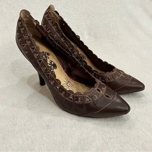 Naughty Monkey Scalloped Faux Leather Pumps size 10 Brown - $43 - From Jackie
