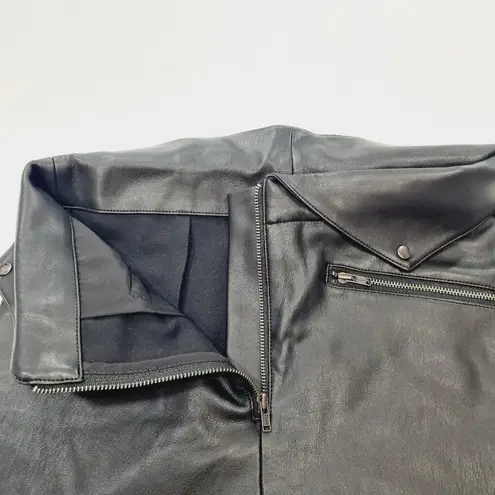 Self: 92% rayon, 8% polyurethane Contrast: 100% poly Hand wash cold Faux leather fabric Zip fly Fron... Show more